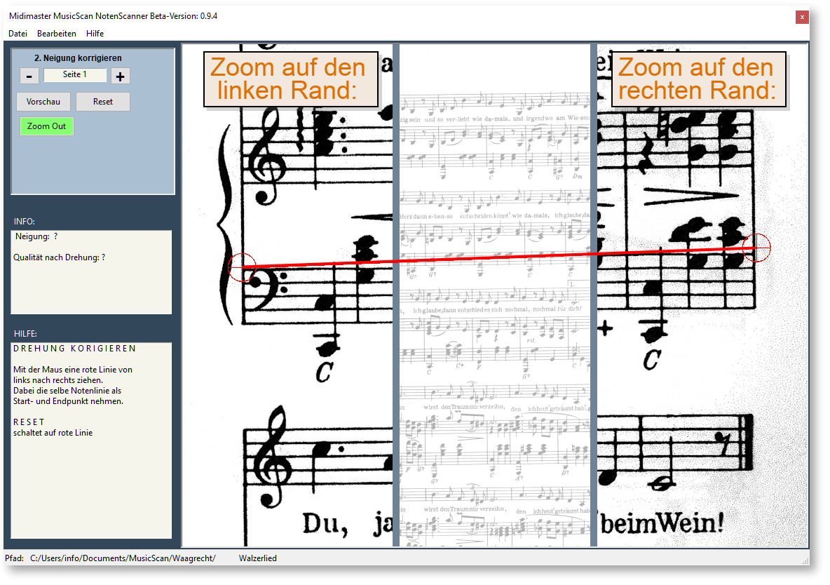 Neigung der Notenzeilen korrigieren
