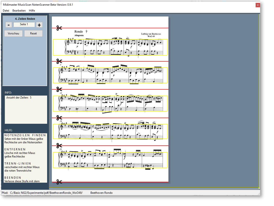 Optional: Sie möchten die Reihenfolge der Zeilen ändern? Wiederholungszeichen, Coda und Segno loswerden? Zerlegen Sie die Seite in Zeilen.
